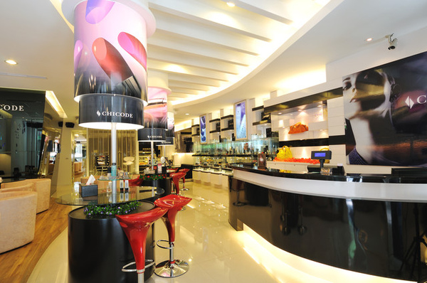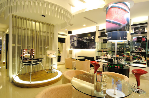 二樓除了可供會員諮詢課程和用餐之外,也擺放了各式CHICODE化妝品於展示櫃中,