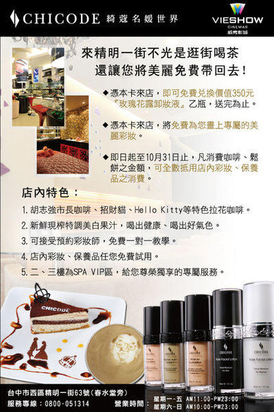 ※即日起到10/31日止,來店消費咖啡、鬆餅,金額還可全額折抵彩妝、保養品。
