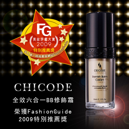 在嚴謹激烈的競爭下,CHICODE全效六合一BB修飾霜,獲得「特別推薦獎」之榮譽。