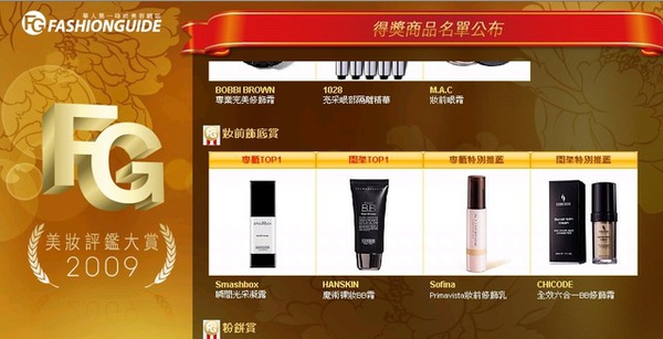 榮獲FG美妝評鑑大賞妝前飾底賞之特別推薦獎